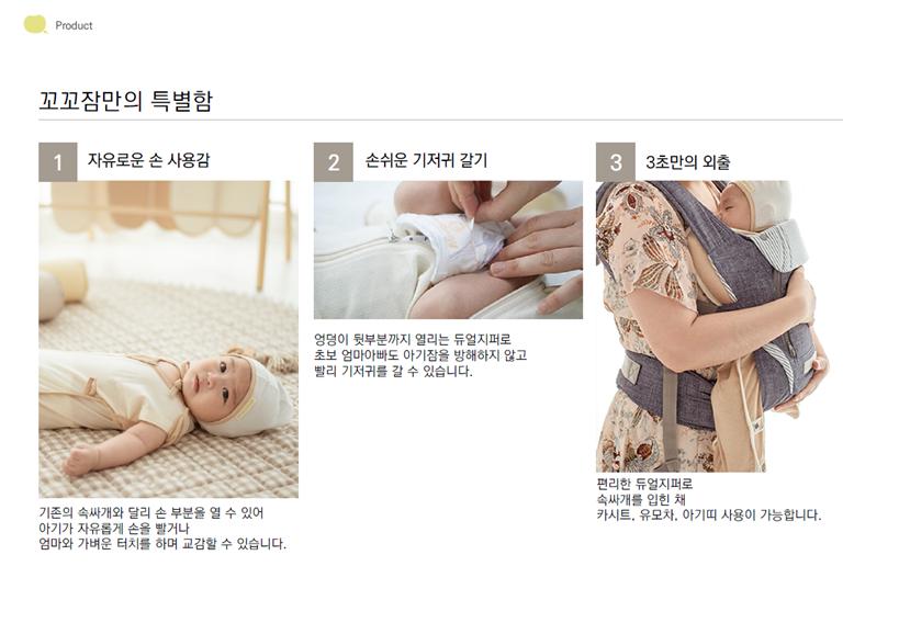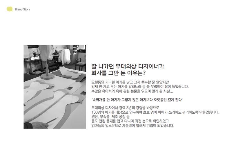 As the mother of two children, a former stage designer, we created a safe and convinient swaddle to solve the difficulties of raising a baby. Based on baby sleep products, we will continue to release products for both babies and caregivers. In the era of low birth rates, we want to become a company that helps parents raise children happily.