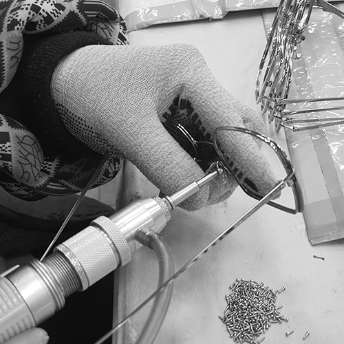CNC processed metal parts, TR90 components, and automatic β-Titanium hinges